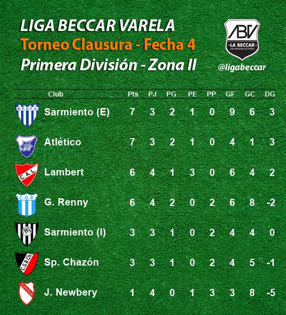 Lambert y Sarmiento de Etruria empataron 3 a 3 en Monte Maíz por la 4ta fecha de la Zona II del Torneo Clausura. En Wenceslao Escalante, Guillermo Renny se impuso 1 a 0 sobre Sarmiento de Idiazábal.