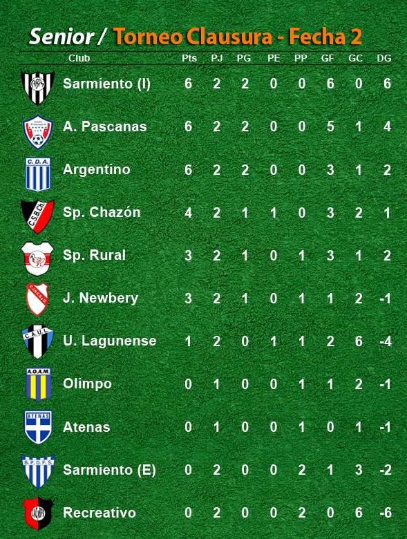 Sarmiento de Idiazábal, Alianza Pascanas y Argentino lideran con puntaje ideal el Torneo Clausura "Guillermo Roberto Carrera". Sportivo Chazón derrotó a Sportivo Rural y Jorge Newbery a Atenas en el clásico.