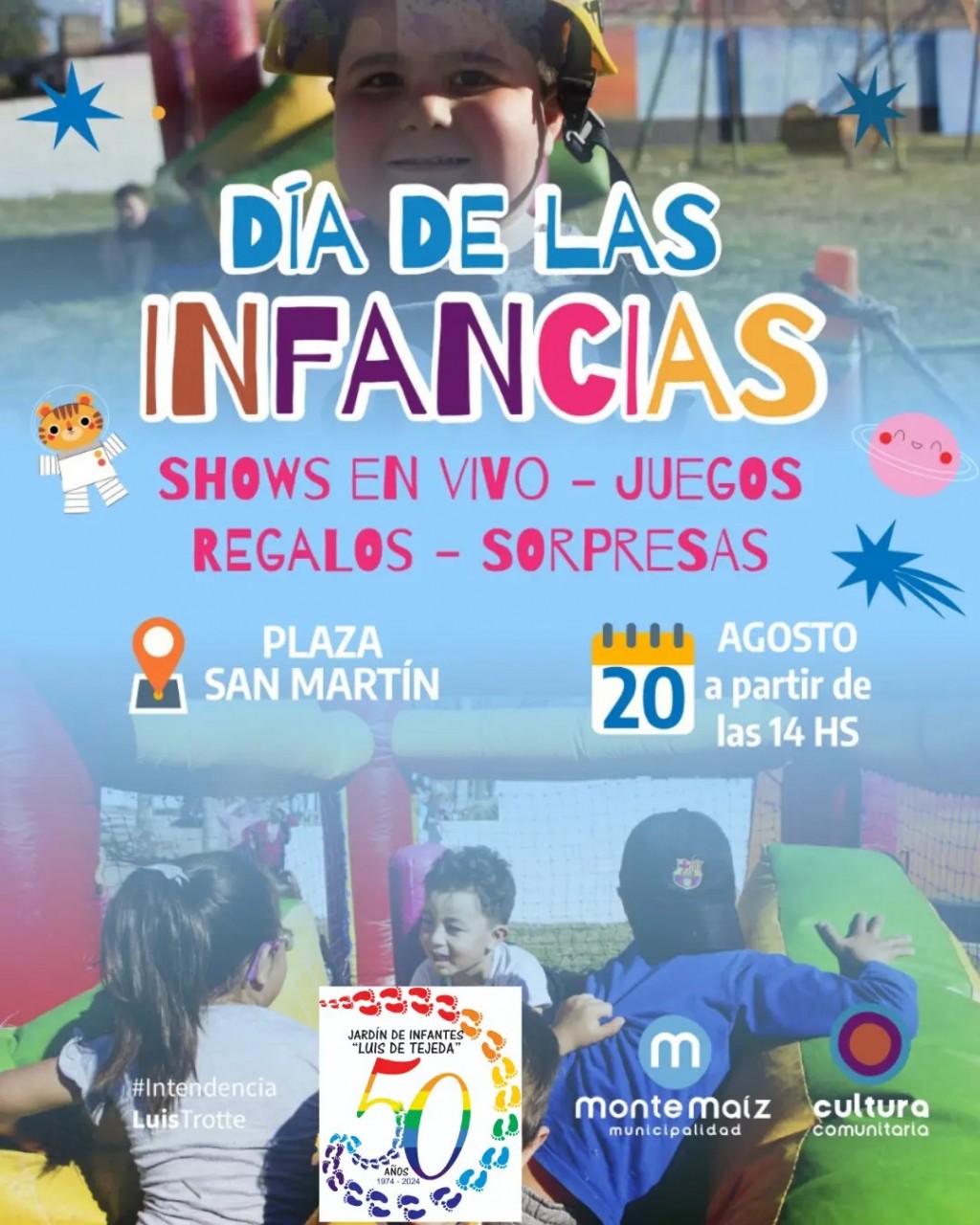 Este domingo 20 de agosto desde las 14hs. se desarrollará la celebración del Día de las Infancias en la plaza José de San Martín.