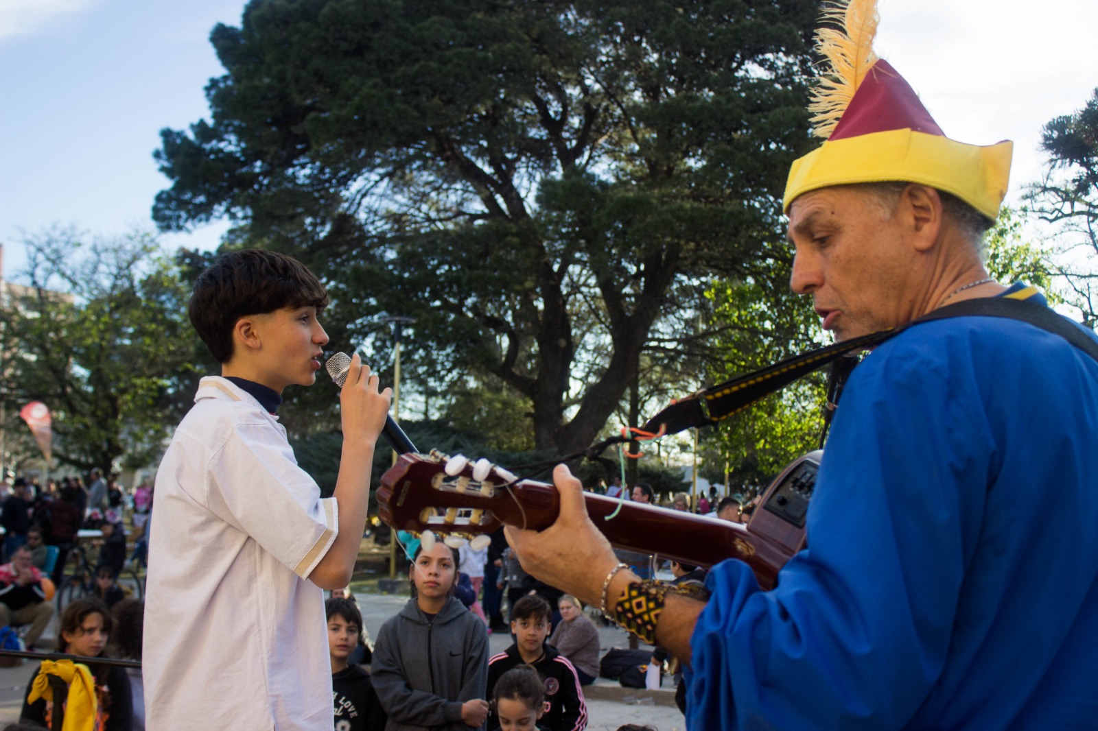 Con canciones lograron la atención y participación de niños y adultos que colmaron la calle San Martín frente al Centro Cultural.
