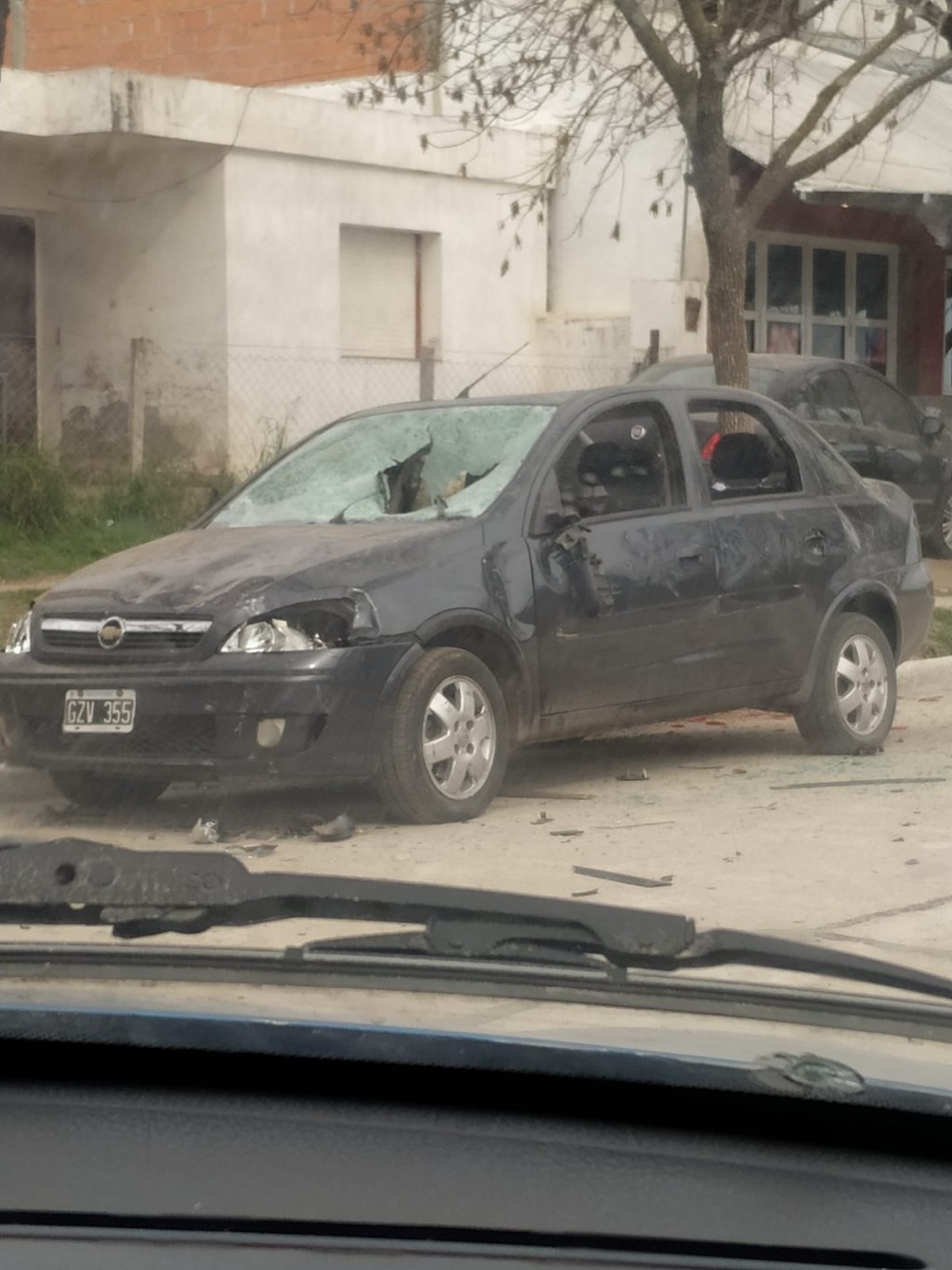 Un masculino de 26 años, empleado del Bar realizó denuncias por lesiones leves y daños contra su vehículo, el cual fue atacado con palos hasta destrozarlo tal como lo muestran las fotografías.