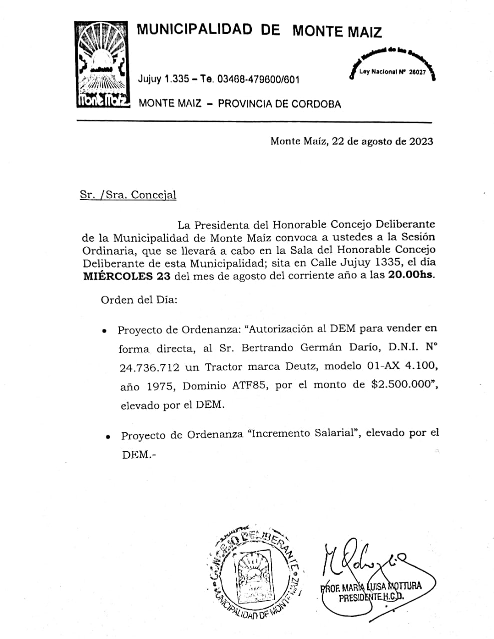 EN EL HONORABLE CONCEJO DELIBERANTE DE MONTE MAÍZ