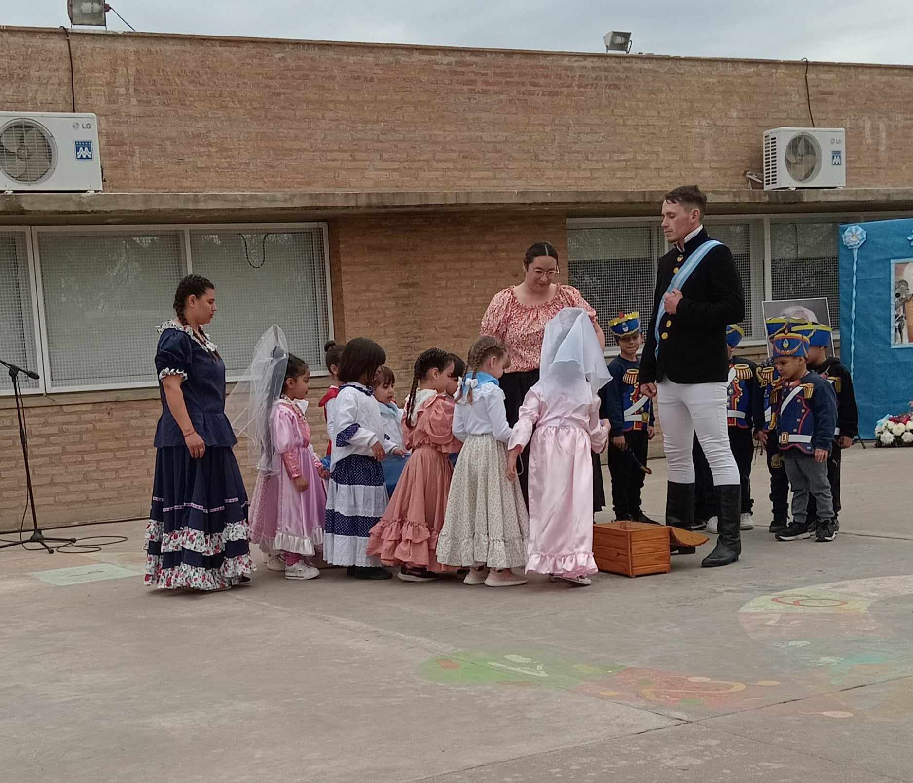Alumnos de la salita de cinco del Jardín bailaron la “Chacarera al más grande de la Patria”; alumnos de 1° Grado “A” representaron “La Película de mi Vida”; alumnos de 4° Grado “B” hablaron del sable corvo de San Martín.