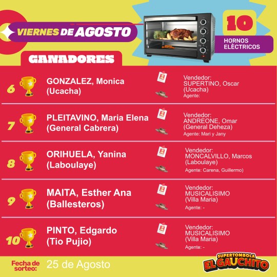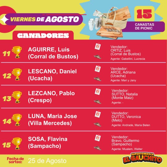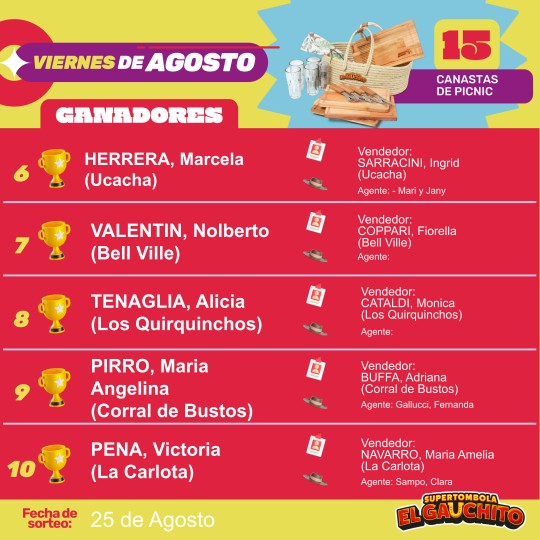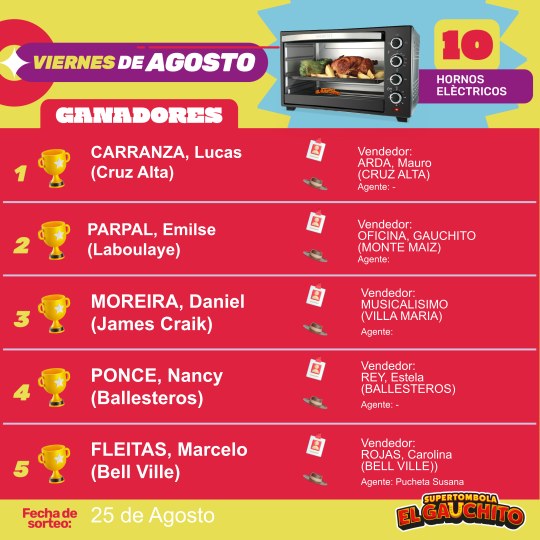 SORTEOS DE LOS VIERNES DE AGOSTO