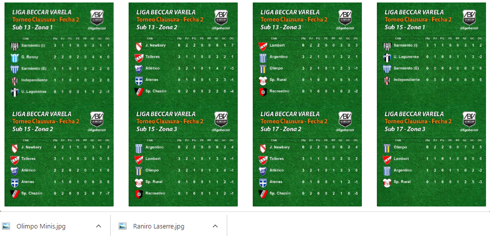Se jugó en la tarde del sábado 26 de agosto la 2da fecha de los torneos Clausura Sub 13 “Domingo José Tamietto”, Sub 15 “85° Aniversario Liga Dr. Adrián Beccar Varela” y Sub 17 “Javier Alejandro Lorenzino".