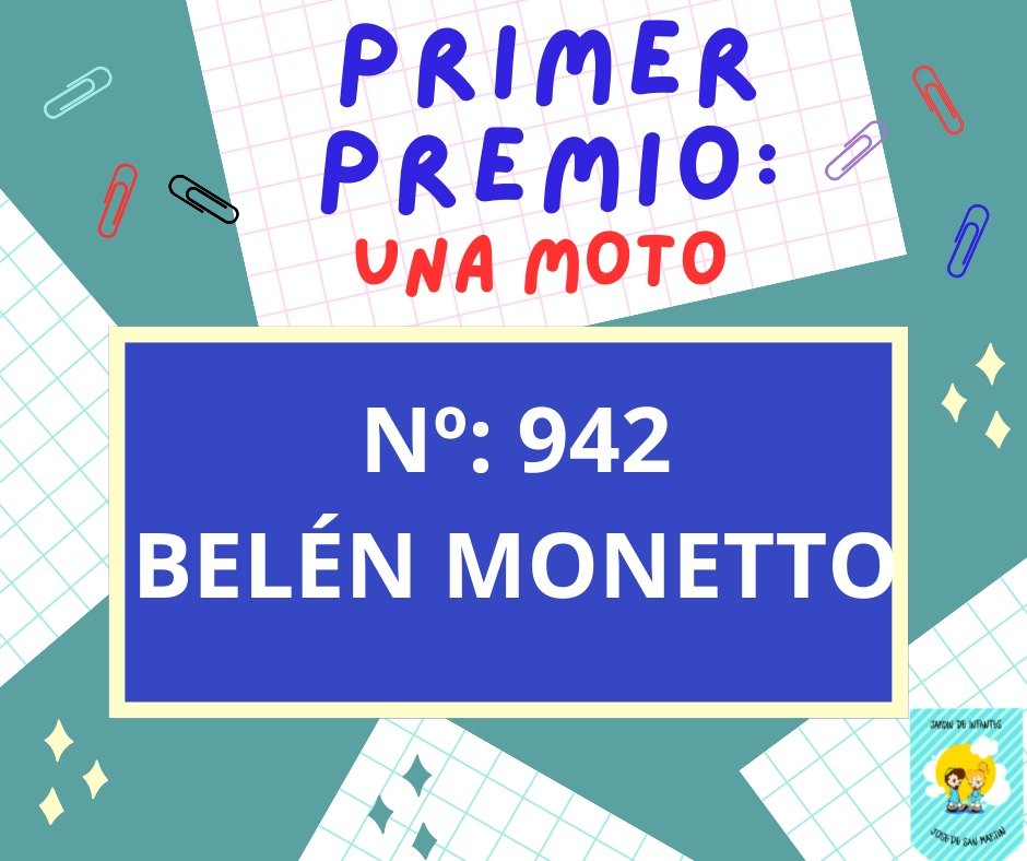 1° Premio: Una Moto: N° 942 Belén Monetto