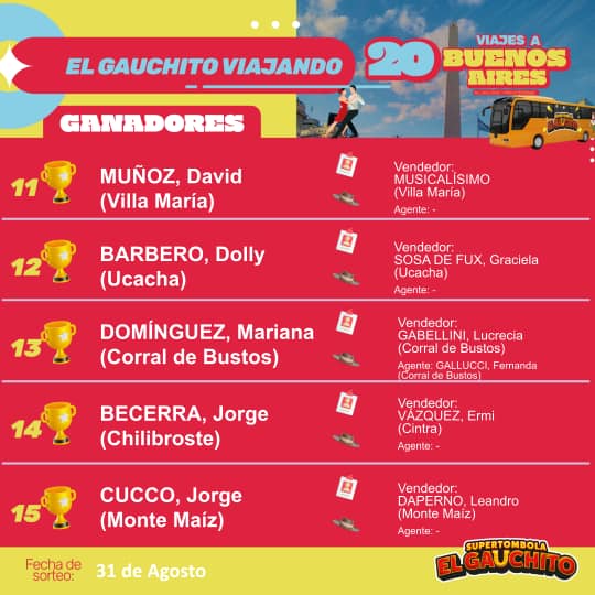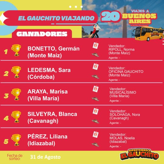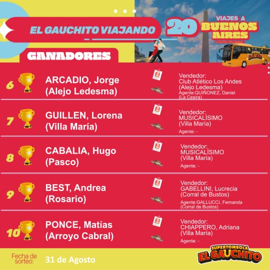 SORTEO MENSUAL DE AGOSTO: SÚPER TÓMBOLA EL GAUCHITO