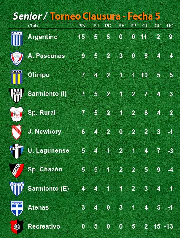 El líder Argentino hilvanó su quinto triunfo consecutivo en el Torneo Clausura "Guillermo Roberto Carrera". Olimpo ganó y acecha al escolta Alianza Pascanas. También vencieron Jorge Newbery y Sarmiento (I).