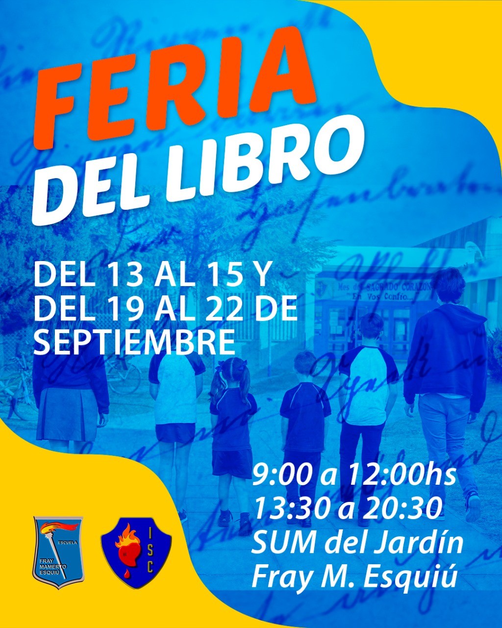 Nos complace enormemente invitarlos a la Feria del Libro, organizada por el Instituto Técnico y Orientado Sagrado Corazón y la Escuela Fray Mamerto Esquiú Niveles Inicial y Primario. Este evento cultural que celebra la magia de la lectura y la pasión por los libros, intenta ser una experiencia enriquecedora para toda la comunidad.