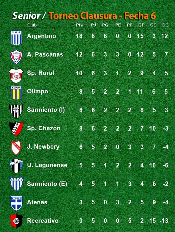 Argentino sigue imparable y lidera con puntaje ideal el Torneo Clausura "Guillermo Roberto Carrera". Alianza Pascanas se afianza como escolta, Sportivo Rural trepó al tercer lugar y también ganó Sportivo Chazón.