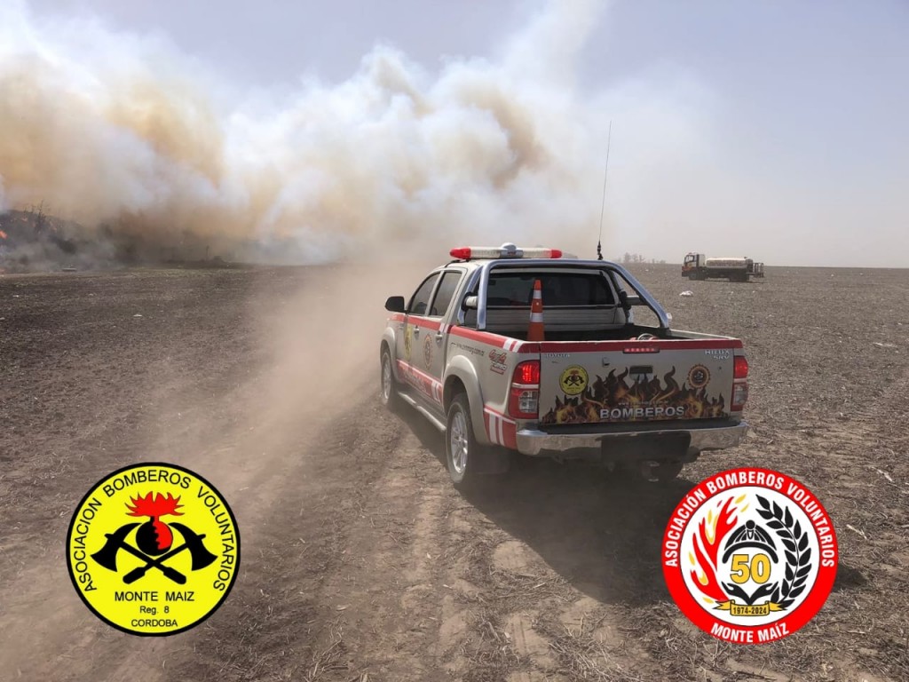 Personal de Bomberos Voluntarios de Monte Maíz se encuentran trabajando en el predio del basural, sector noreste del pueblo, combatiendo un incendio que se declaró, por causas que se tratan de establecer, pasado el mediodía.