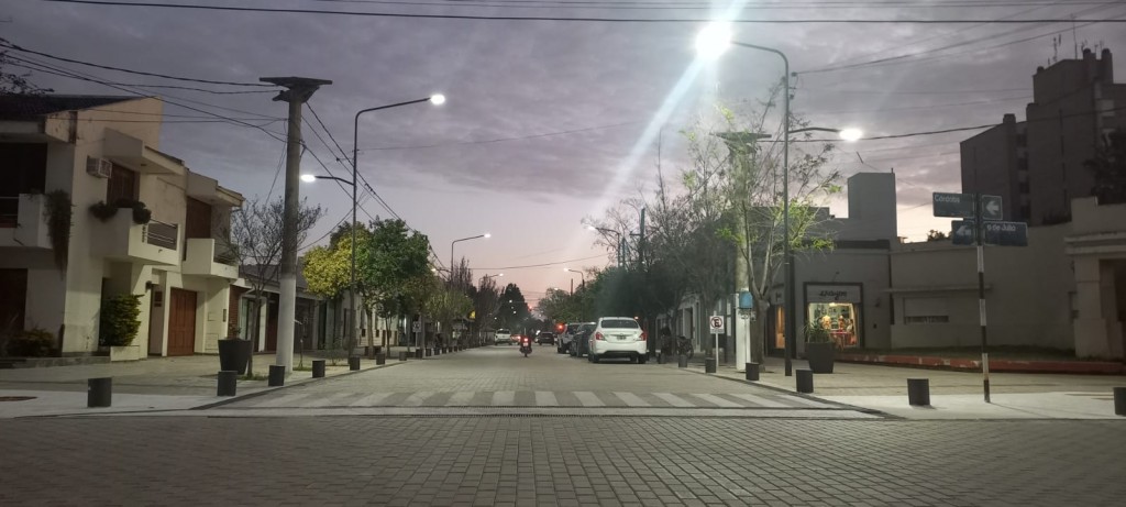 Tras la colocación de los adoquines y la corrección de las canaletas de desagües, se instalaron las nuevas columnas de iluminaciòn con luminarias led.