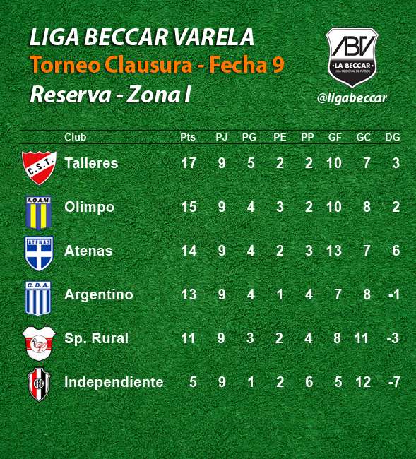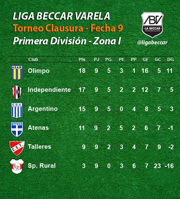 Olimpo lidera la Zona I del torneo Clausura donde Independiente se convirtió en el nuevo escolta. La Zona II tiene sus cuatro clasificados: Atlético -primer puesto-, Lambert, Guillermo Renny y Sportivo Chazón.