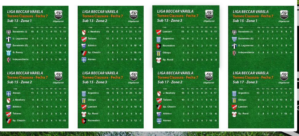 Se jugó en la tarde del sábado 7 de octubre la 7ma fecha de los torneos Clausura Sub 13 “Domingo José Tamietto”, Sub 15 “85° Aniversario Liga Dr. Adrián Beccar Varela” y Sub 17 “Javier Alejandro Lorenzino".