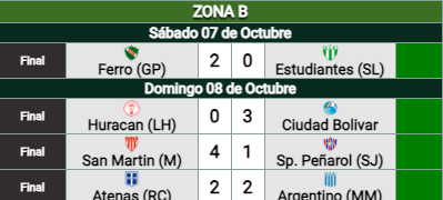 El equipo de Carlos Mazzola se mantiene segundo con 52 puntos en la tabla de posiciones de la zona "B", donde el puntero es Ciudad Bolívar con 56; en tanto que Juventud Unida de San Luis es el tercero con 47 puntos.