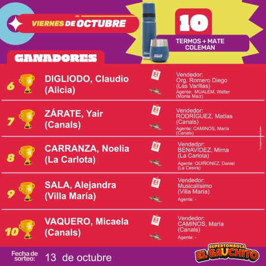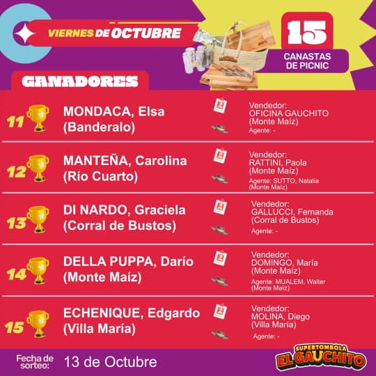 SORTEOS DE LOS VIERNES DE OCTUBRE