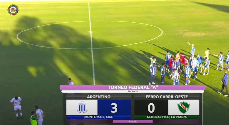 Argentino ganó por 3 a 0 a Ferro de General Pico, provincia de La Pampa, en el estadio Modesto Marrone, afianzándose en el segundo lugar de la zona "B" del Torneo Federal "A". De esta manera, suma 55 puntos quedando a solo tres puntos del puntero, Ciudad Bolívar, quien cayó con Atenas de Río Cuarto.