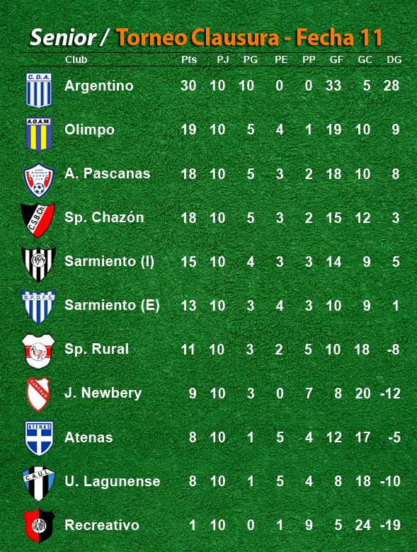 FÚTBOL SENIORS: RESULTADOS DE LA UNDÉCIMA FECHA