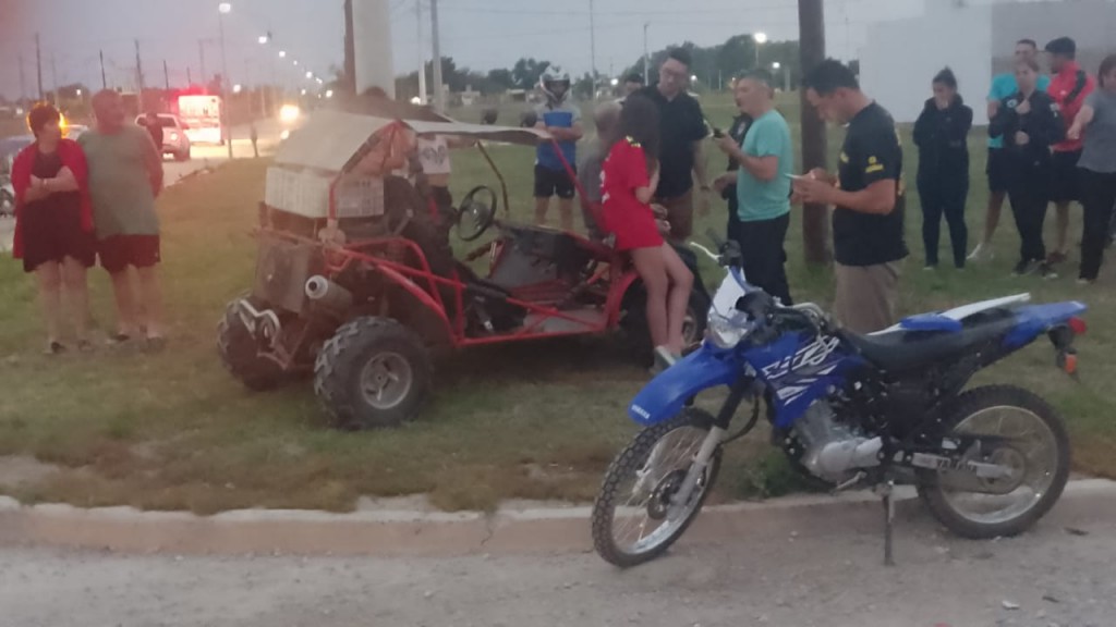Un accidente de tránsito se produjo a las 19:30 hs. aproximadamente en B° Santa Bárbara, calle Hortensias, cuando una motocicleta, Marca Yamaha 125 c.c., con dos ocupantes, menores de edad (14 años) chocaron con un auto arenero, conducido por Carlos Merlo, quien circulaba acompañado de su hija.
