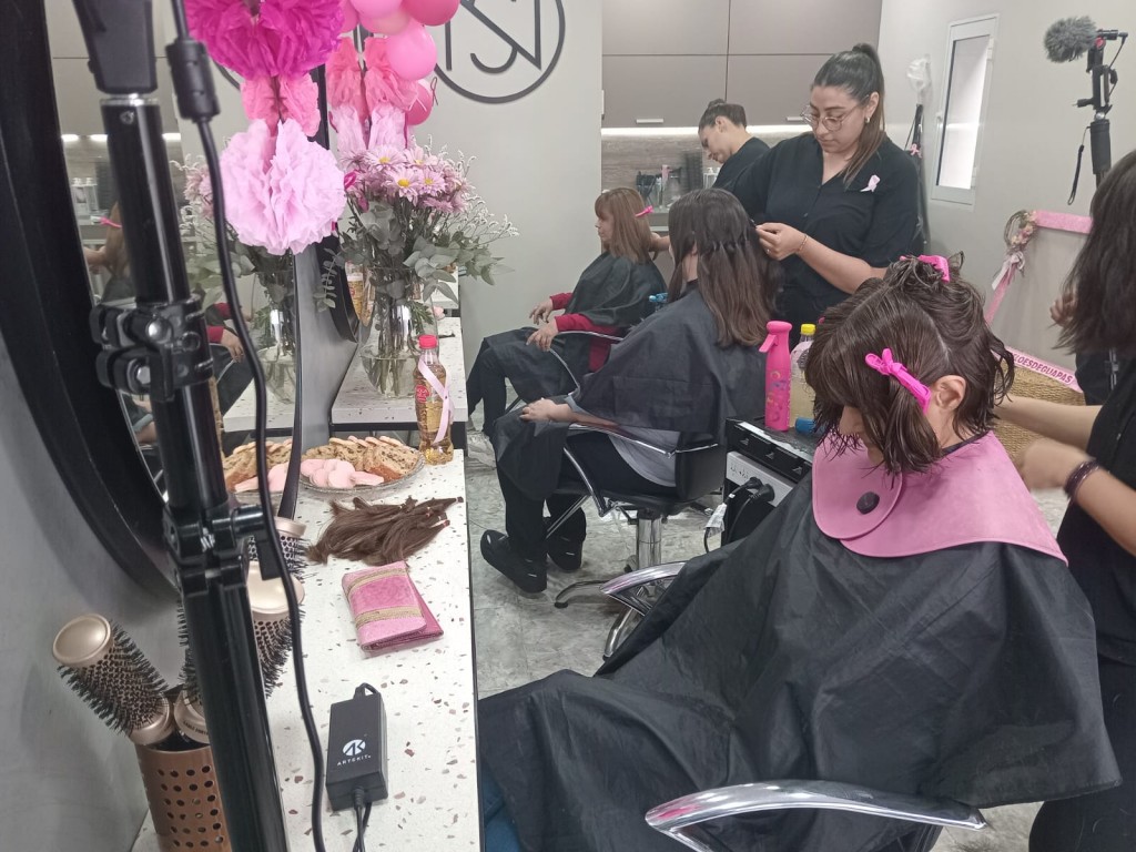 Mujeres de nuestra localidad accedieron a cortarse el pelo en la peluquería de Noelia Silva, quien junto a dos colaboradoras,Natalí Figueredo y Yohana Villarreal, se sumaron a esta campaña solidaria.