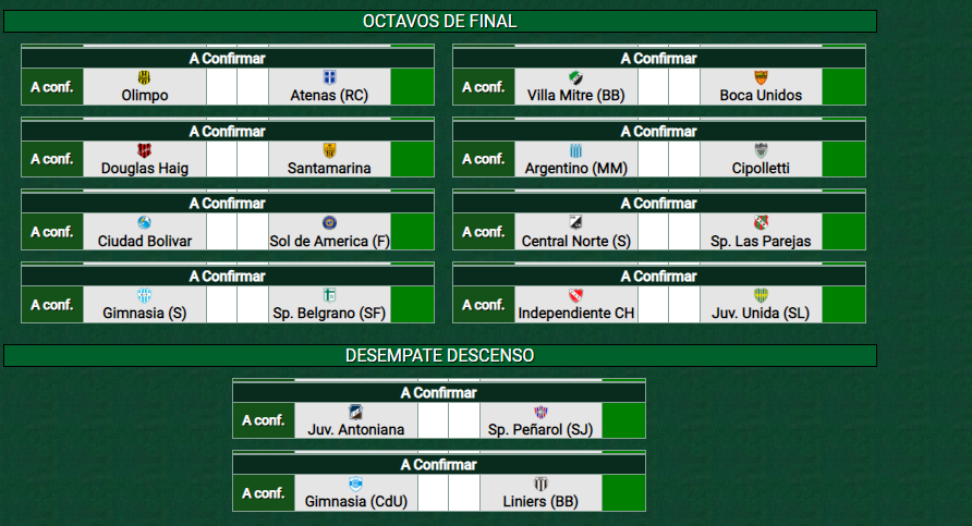 HABRÁ PARTIDOS DESEMPATES. FIXTURE DE OCTAVOS DE FINAL