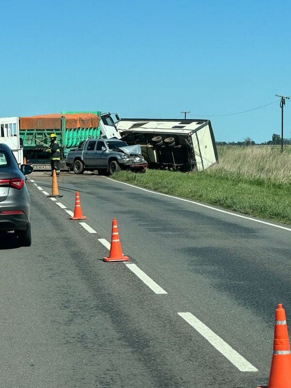 Cerca de las 10 de la mañana de hoy, se produjo un triple choque entre una camioneta Toyota Hilux, un camión y un tractor cerca del cruce de las rutas 11 y 3.