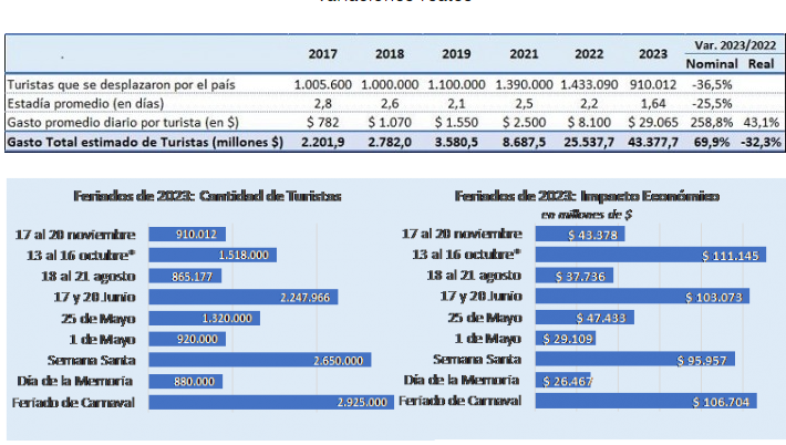 Frente al mismo fin de semana del año pasado, viajó un 36,5% menos de turistas y el impacto económico tuvo una caída real de 32,3%. Hubo muchas cancelaciones de viajes desde octubre, tras conocerse que habría balotaje.
