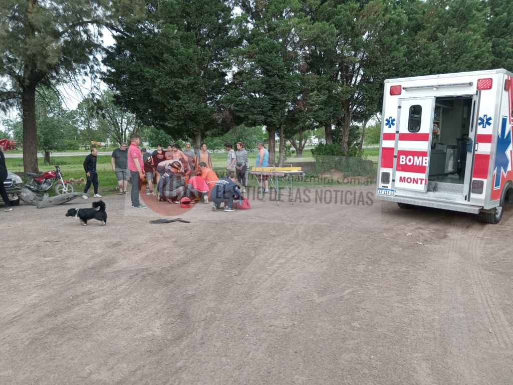 La moto era conducida por Diego Molina (15) quien circulaba por la mencionada calle de tierra de este a oeste, e iba acompañado de Dante Pacheco (55). Ambos fueron asistidos en el lugar por personal de Bomberos y luego debió ser trasladado al Hospital Municipal.