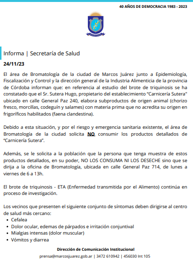 LOS CASOS DE TRIQUINOSIS EN MARCOS JUÁREZ