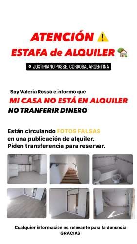 Una vecina de Justiniano Posse denunció públicamente que ofrecían su casa en alquiler a través de publicaciones en redes sociales. Recibió llamados telefónicos en donde debió desmentir la publicación ya que en su casa vive ella con su familia.