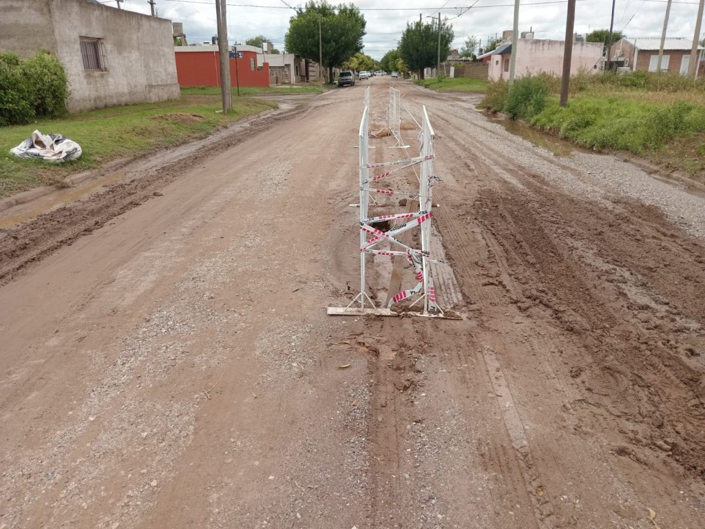 Luego de la lluvia de este miércoles por la madrugada, sufrió hundimientos la obra nueva de ampliación de la red cloacal de calle Mendoza, casi esquina Neuquén, en barrio Gobato. Es la segunda vez que esto ocurre en pocas semanas, ya que lo mismo pasó en una lluvia anterior de poco más de 50 mms.