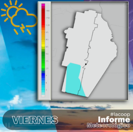Un servicio de Cooperativa Agrícola de Monte Maíz junto con el meteorólogo Leonardo De Benedicti.