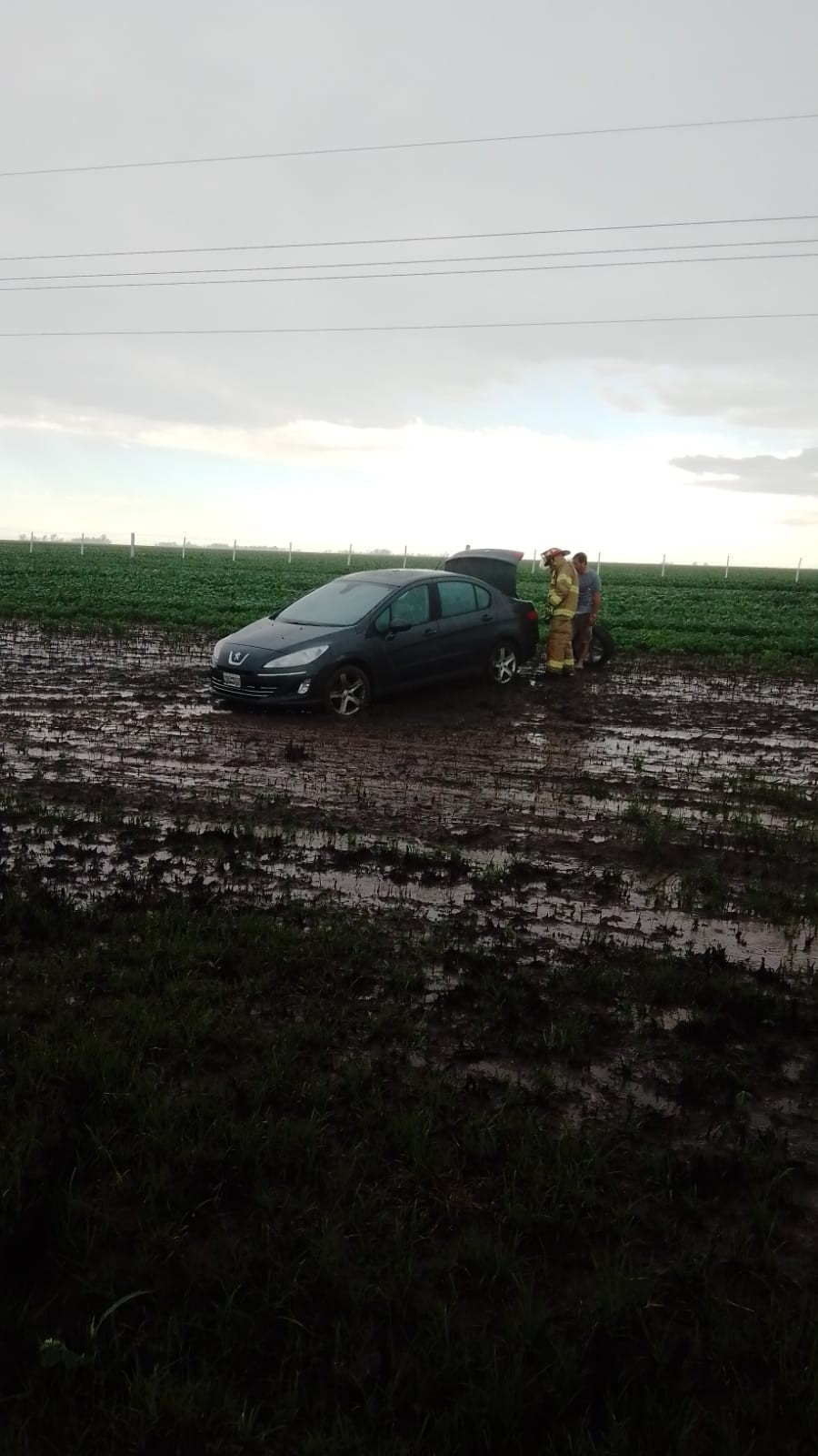 Personal de Bomberos procedió al rescate del rodado. El vehículo circulaba con sentido de marcha de este a oeste (de Monte Maíz hacia Wenceslao Escalante).