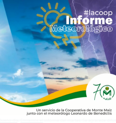 Un servicio de Cooperativa Agrícola de Monte Maíz junto con el meteorólogo Leonardo De Benedictis.