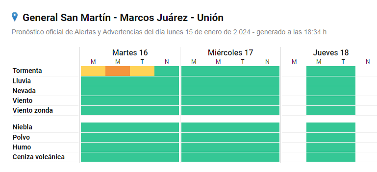 El Departamento Unión está en alerta Amarillo para esta madrugada y en alerta Naranja para la mañana de este martes. Los alertas fueron emitidos por el SMN (Servicio Meteorológico Nacional.