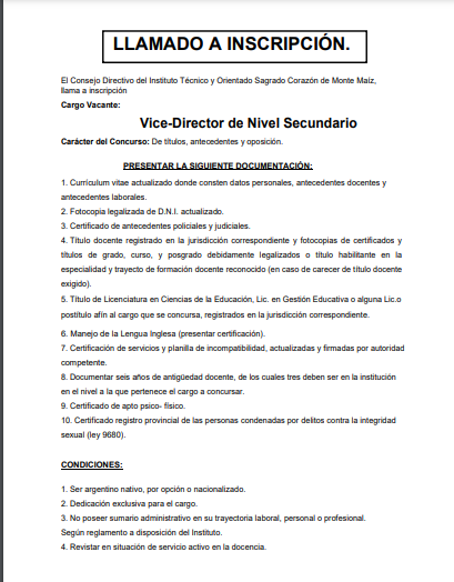 LLAMADO A INSCRIPCIÓN PARA SECRETARIA Y VICEDIRECTOR