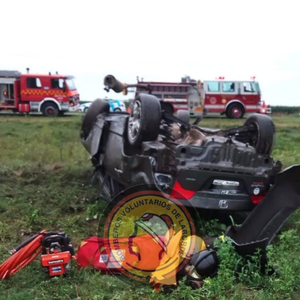 Los ocupantes del auto fueron rescatados del interior del mismo por personal de Bomberos, recibieron las primeras atenciones en el lugar y luego fueron trasladados al Hospital de Laborde.
