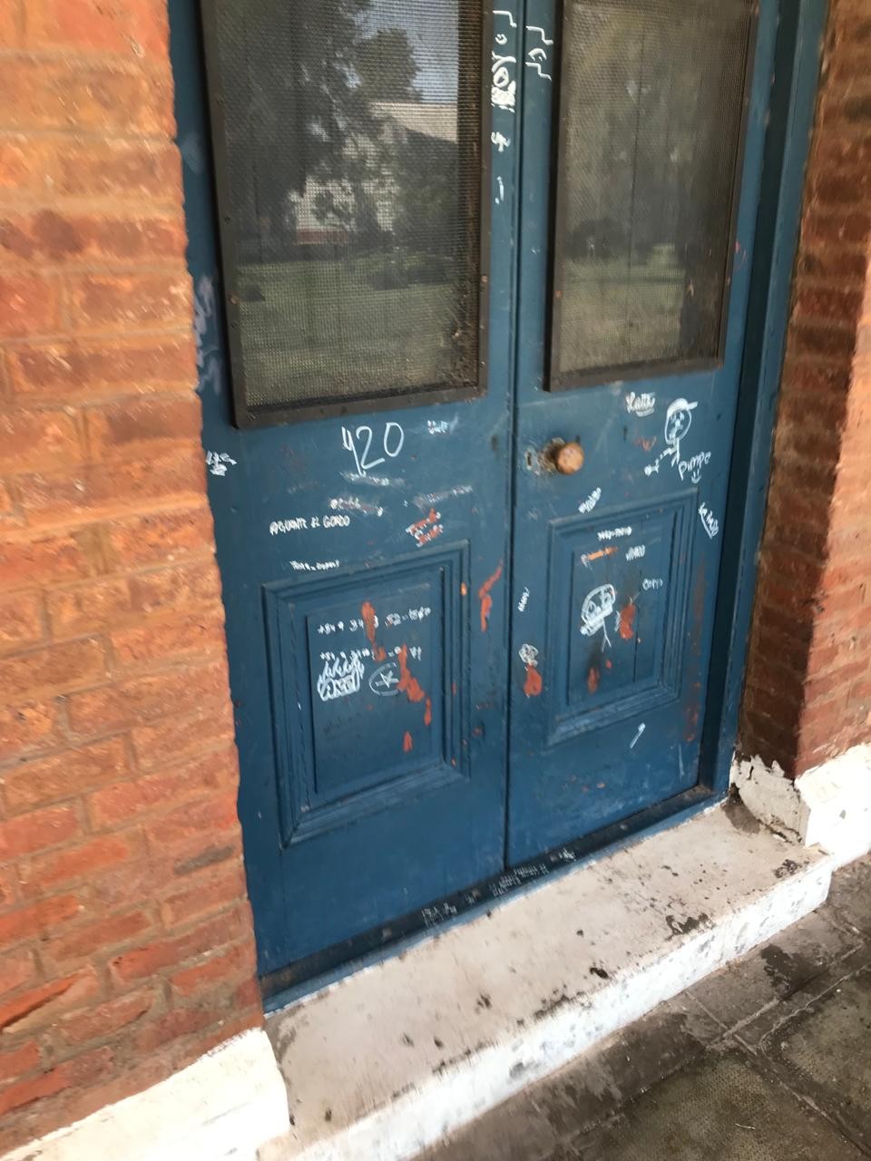Además intentaron ingresar al establecimiento forzando la puerta aunque no lograron su cometido. De todos modos rompieron el vidrio y pintaron grafitis en la parte de madera.