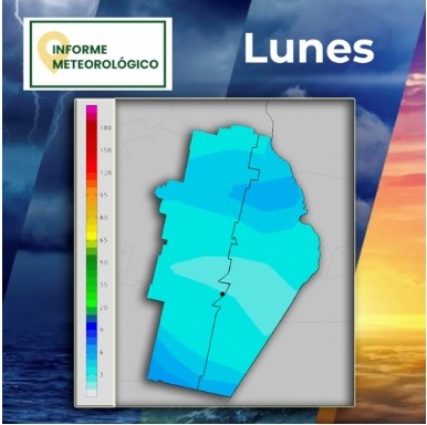Lunes y martes: vuelven las precipitaciones con probalidad de alguna lluvia, tormenta o chaparrón. Sin grandes acumulados.