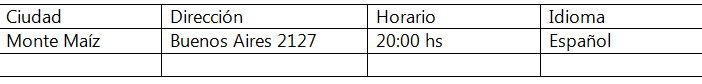 En Monte Maíz, se celebrará en los siguientes sitios y horarios: