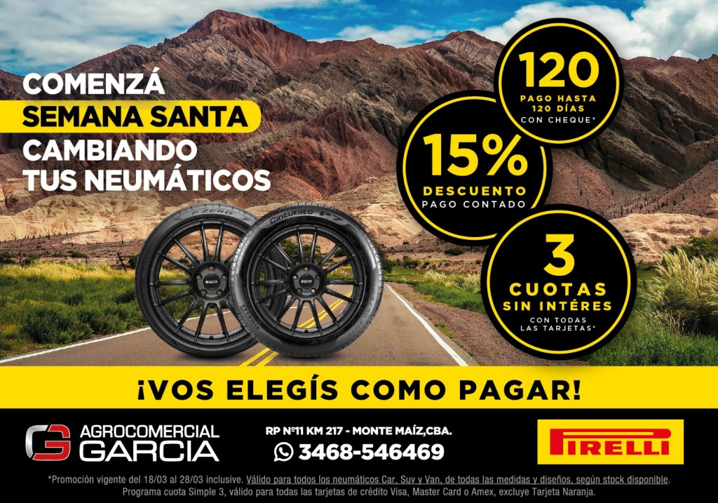 Diez días imperdibles en Agrocomercial García. Vos elegís como pagar tur neumáticos.
