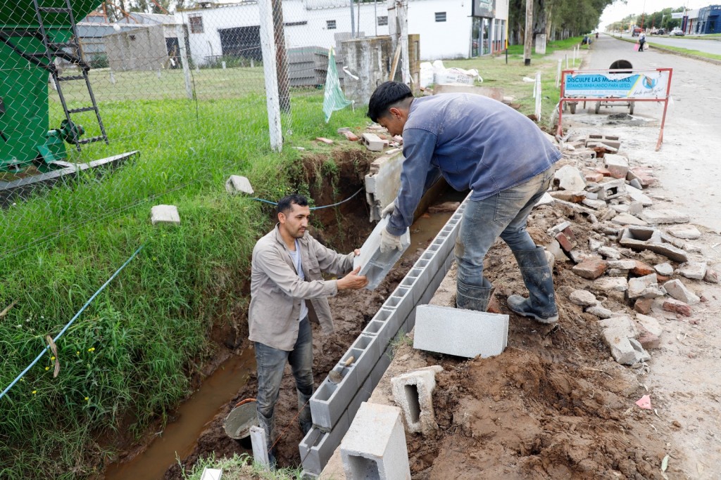 Personal de obras públicas procedió a la reparación de un tramo del canal de desagües de la colectora Raúl Ricardo Alfonsín, en proximidades de la estación terminal de ómnibus.