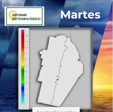 Un servicio de Cooperativa Agrícola de Monte Maíz junto con el meteorólogo Leonardo De Benedictis.