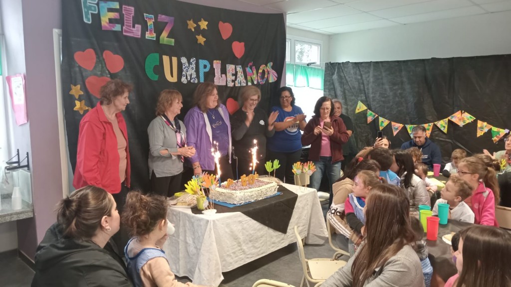 La institución cincuentenaria preparó un agasajo para ex Directoras, ex docentes y ex alumnos con chocolate y tortas. Se cantó el feliz cumpleaños tras las palabras alusivas de la actual Directora, María Eugenia Figueredo.