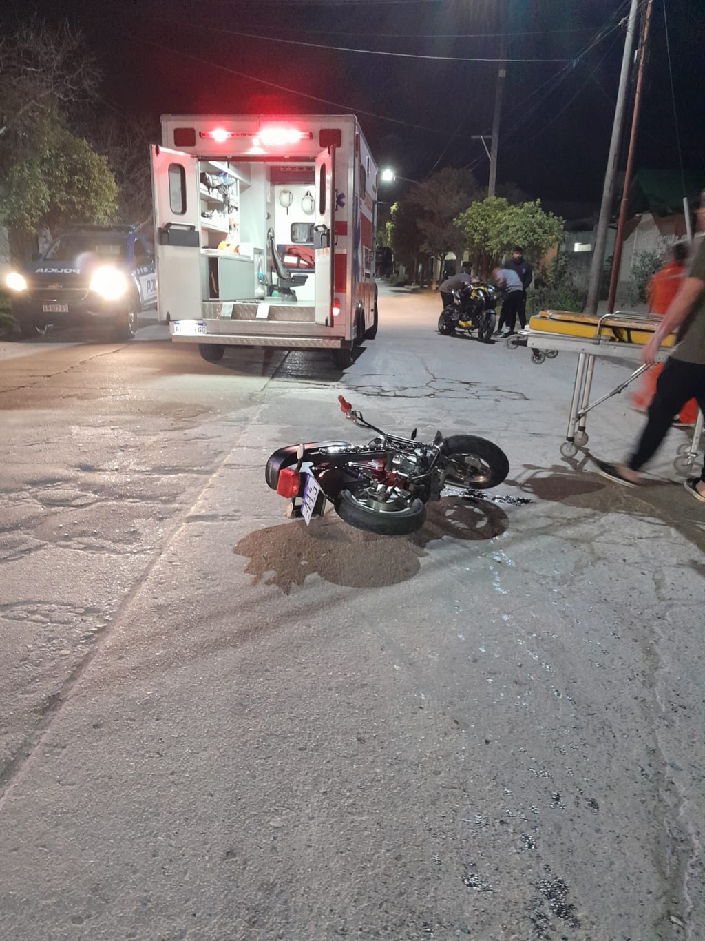 Al arribar al lugar se constató la colisión entre dos motocicletas. Una de ellas, una Guerrero Dax 70 c.c., conducida por Candela Jazmín L.(14), quien circulaba acompañada de Isabela M, (13), ambas de nuestra localidad. La otra motocicleta, una Rouser NS 200 c.c. era conducida por Danilo Torres (27) domiciliado en calle Río Negro s/n.