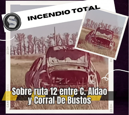 Un automovilista, seguidor de El Soberano Digital, que circulaba por ruta 12 entre Camilo Aldao y Corral de Bustos nos informó sobre un automóvil que se incendió al costado de la ruta.