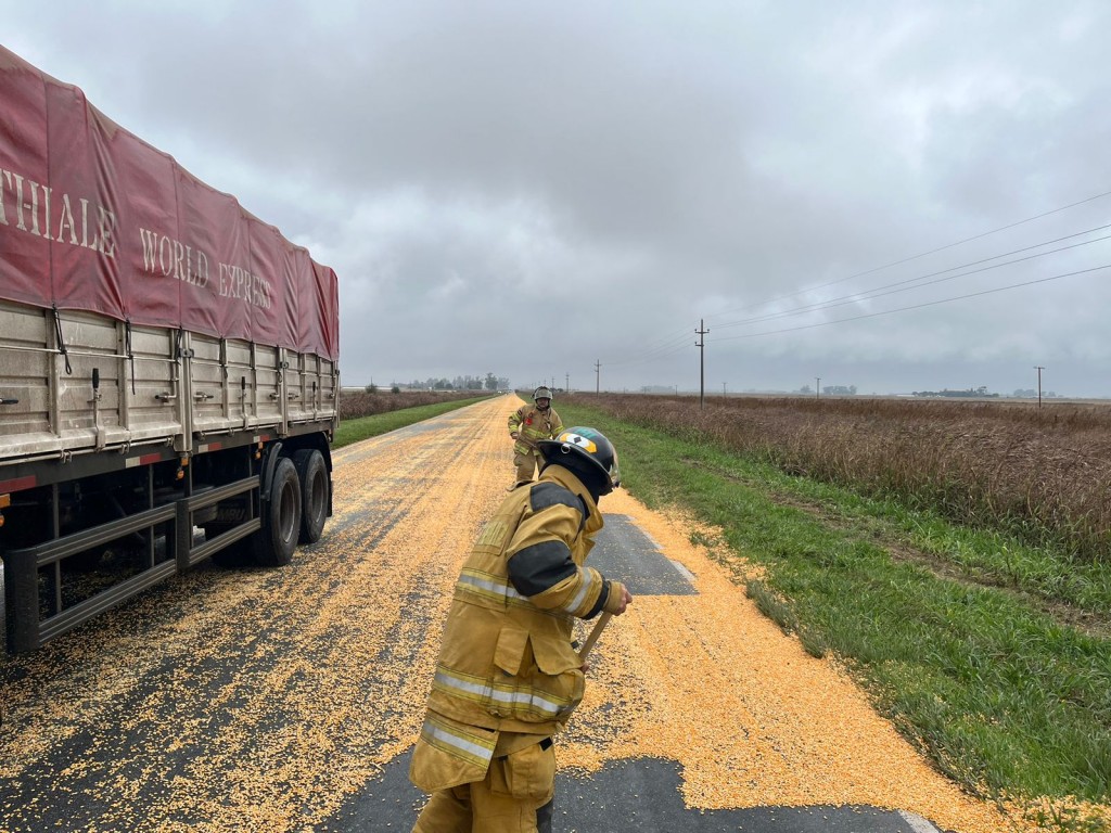 A las 11:30 hs. De este domingo, Bomberos Voluntarios de Monte Maíz fueron convocados a ruta provincial Nº11  a unos 10 kms. del acceso este de nuestra localidad, por derrame de cereal de un camión.
