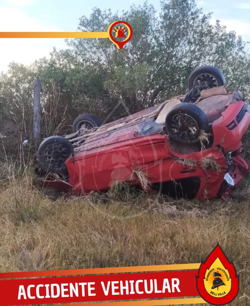 Hoy, a las 07:45 hs., personal policial de la Patrulla Preventiva Bell Ville, constató en ruta provincial N° 3, a 15 km al Sur de la mencionada ciudad, en la zona denominada "el globo", el vuelco de un automóvil marca Fiat Palio, color rojo. Presentando importantes daños en su carrocería, detectando allí, a los dos ocupantes del rodado. Uno de ellos, el conductor, un joven de 24 años de edad, sin signos vitales y el acompañante, un masculino de 22 años de edad, con heridas de consideración. Este último fue trasladado al Hospital Regional Ceballos para su asistencia.