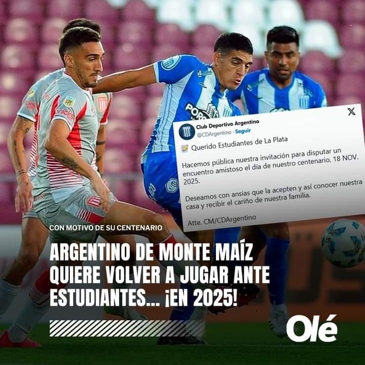 De cara a su centenario, que será el 18 de noviembre de 2025, Argentino invitó a Estudiantes de La Plata a jugar un partido en el Modesto Marrone para celebrar tan importante fecha.