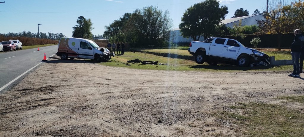 Se recibe llamado solicitando presencia de Bomberos Voluntarios por colisión entre camioneta, conducida por un masculino de apellido Schiarolli, y utilitario, conducido por Francisco Gauna. Al arribo se procede a la liberación de ambos ocupantes y posterior traslado de los mismos, politraumatizados, al hospital local para control.